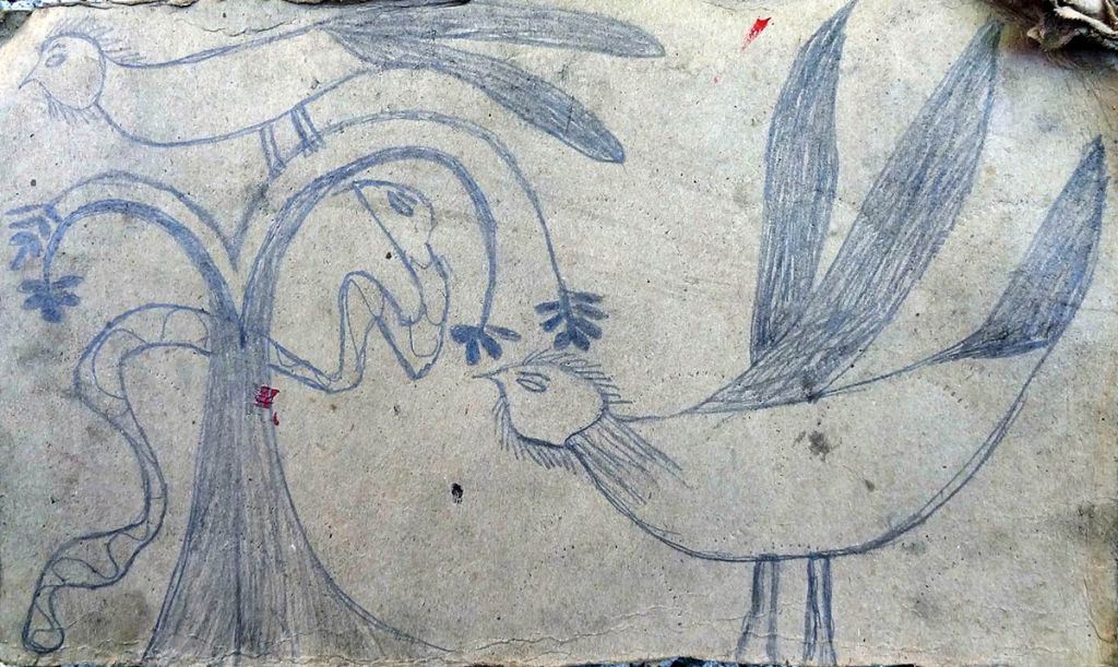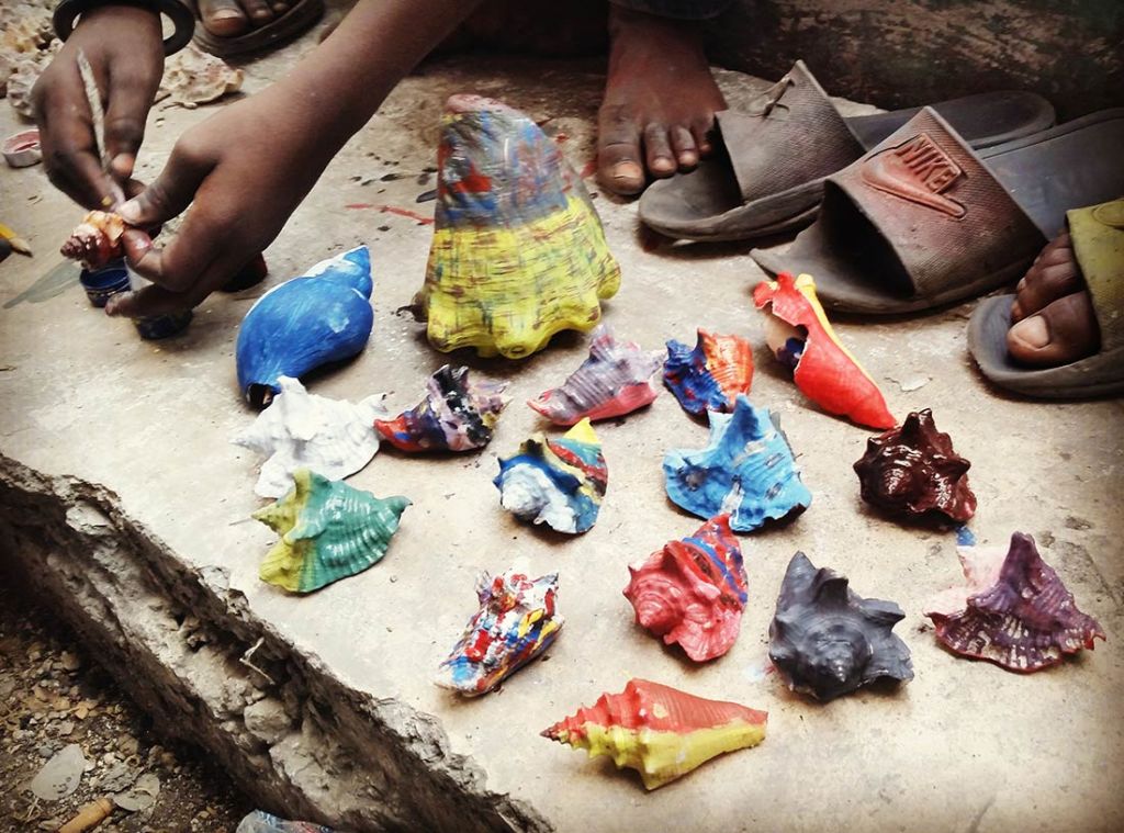 A large part of activating Lakou Claude were the workshops we hosted, which focused on creative exchange and relationships with the land. Papouche gathered lambi shells as symbols of freedom during our group trip to the beach. Katelyne led a workshop painting them, then installed some around the newly planted Moringa saplings in her garden as a nod towards the potential of food sovereignty. moira pulled out a large cotton drop cloth and invited Timoun to draw representations of plants, birds and pollinators from open-sourced images I’d gathered to practice observational drawing of local wildlife. From raucous crowds to meditative drawing sessions, our gatherings were a creative activation of Claude’s lakou that extended the natural world beyond the confines of his garden. They produced community artworks that were displayed both in Jardin Katelyne and woven into Claude’s shrine. We all loved interweaving ecological acts with creative turns that engaged both human and non-human members of the community. The celebratory nature of these gatherings proved an effective means for urban land restoration.