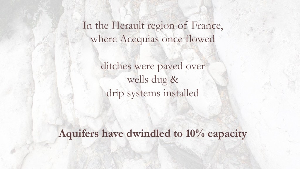 Daniela Jules Garza joined Lee Lee on a residency at AADK in Blanca to investigate Acequias in la Huerta region of south Central Spain. This area was the last Muslim stronghold of ‘al-Andalus’ likely because of the level of productivity of the farmlands in this area. It later became known as La Huerta or gardens of Europe because it was considered one of the most productive regions for growing produce. While we found functioning Acequia, we were also dismayed at the dismantling of the traditional systems, which are steadily being replaced by European Union funded projects that install energy and material intense drip irrigation systems that do not replenish aquifers. The Sagura watershed, for example, is currently operating at 200% capacity, which means that farmers are simply draining aquifers and setting themselves up to face extreme water scarcity. We also found intense chemical use in the mono-crop citrus orchards that are cultivated in the area. These persistent chemicals not only harm our bodies but taint the water. To culminate our time in Spain, we created a reflection of the research we had completed during our residency. The following series were installed on a continuous loop projected at AADK in July 2023. The images convey how Acequia are being maintained as well as the breakdown of portions of the systems.